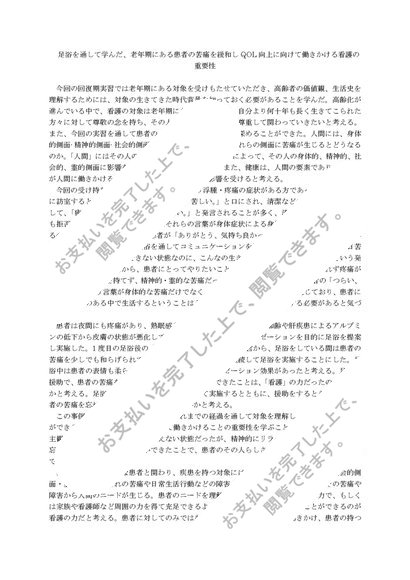 足浴を通して学んだ、老年期にある患者の苦痛を緩和しQOL向上に向けて働きかける看護の重要性