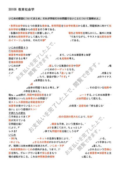 S0106 教育社会学 科目最終試験6設題 合格済