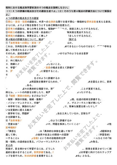 佛教大学 S8105 理科教育法Ⅱ 科目最終試験6設題 合格済