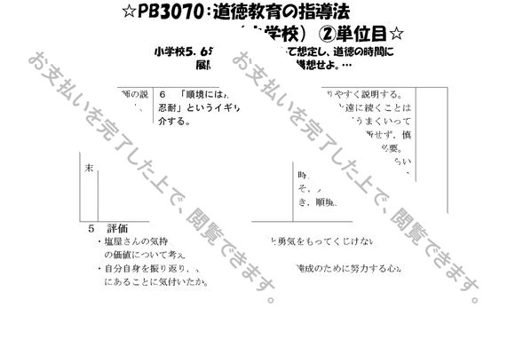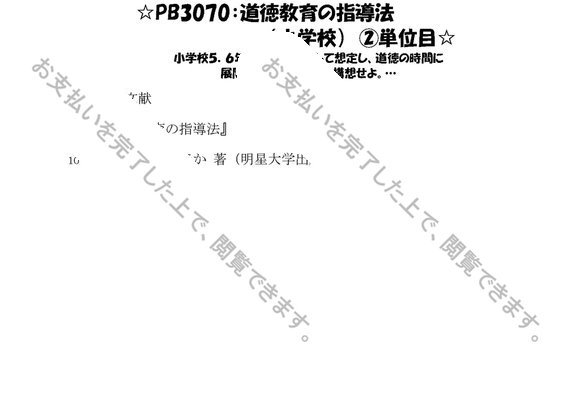 《明星大学通信》PB3070:道徳教育の指導法(小学校) 2単位目★2017年度 一発合格レポート