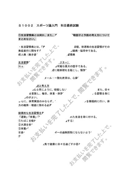 S0104スポーツ論入門 科目最終試験用Happycampus