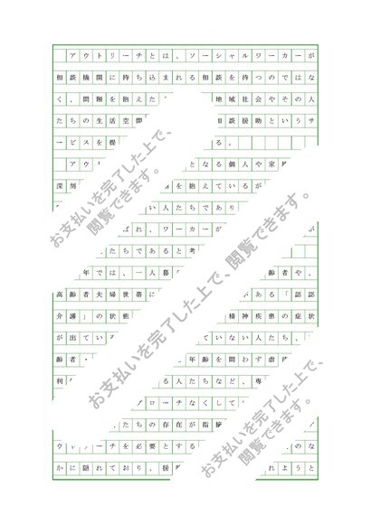 相談援助の理論と方法(アウトリーチによる相談援助の必要性、機能と方法および留意点について)