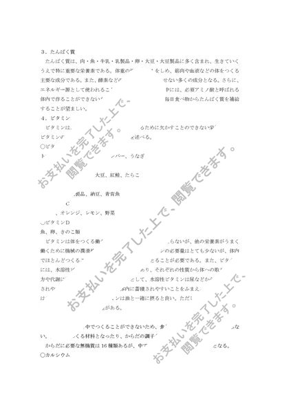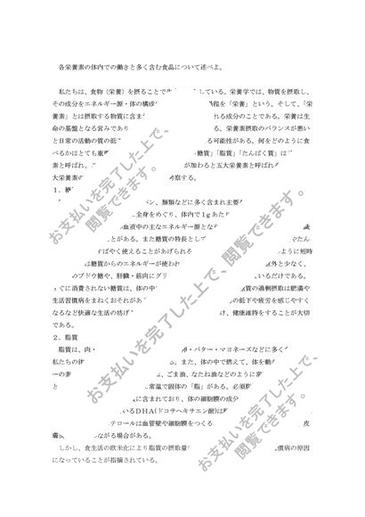 評価A こどもの食と栄養「各栄養素の体内での働きと多く含む食品について述べよ。」