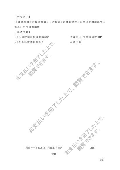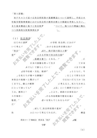 S0613 社会科概論 (2単位)第1設題