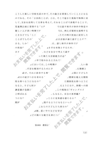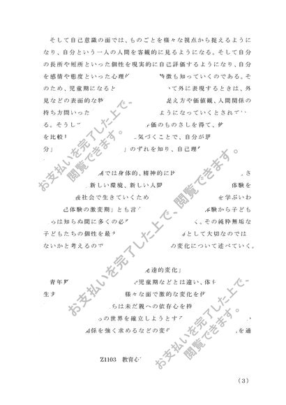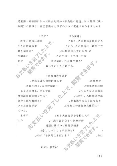 Z1103 教育心理学1 第1設題 A評価合格済み リポート H29、30年対応