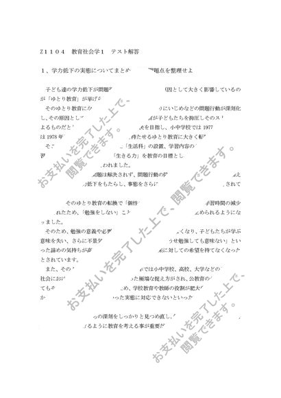 Z1104 教育社会学1 科目最終試験 設題6問 解答(H30年対応)