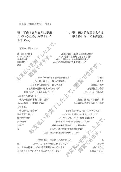 日本大学 平成27年~28年 社会科公民科教育法Ⅰ 分冊1 課題リポート
