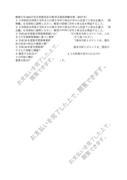 佛教大学 S0617 社会科教育法6問 科目最終試験対策 合格済