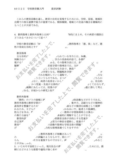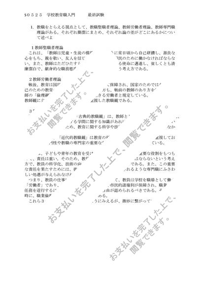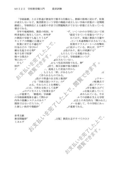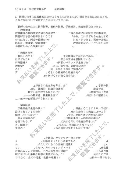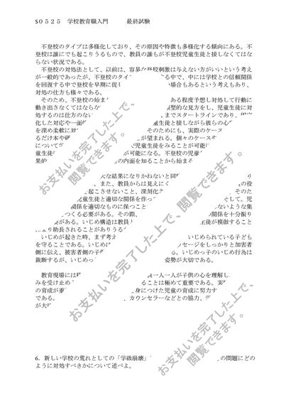 佛教大学 S0525 学校教育職入門 科目最終試験 6問 合格済
