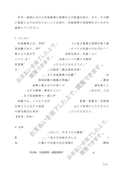 【Z1109】生徒指導・進路指導の研究(中・高)【2017年度A判定】