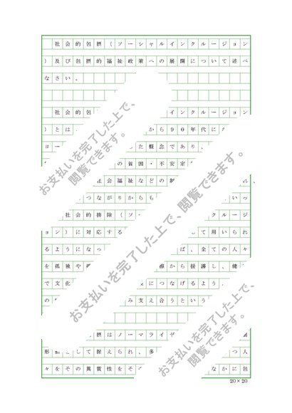 社会的包摂社会的包摂(ソーシャルインクルージョン)及び包摂的福祉政策への展開について述べなさい。 「優」判定