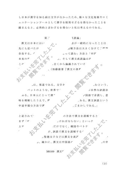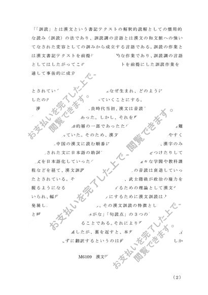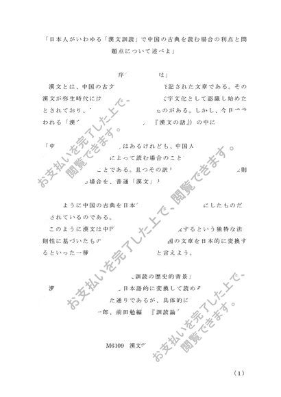 M6109 漢文学1 第二設題 A評価合格済み H30年対応
