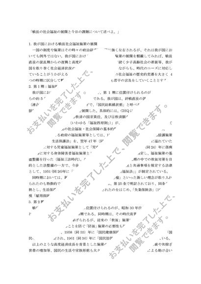 【社会福祉原論② A評価】戦後の社会福祉の展開と今日の課題について述べよ