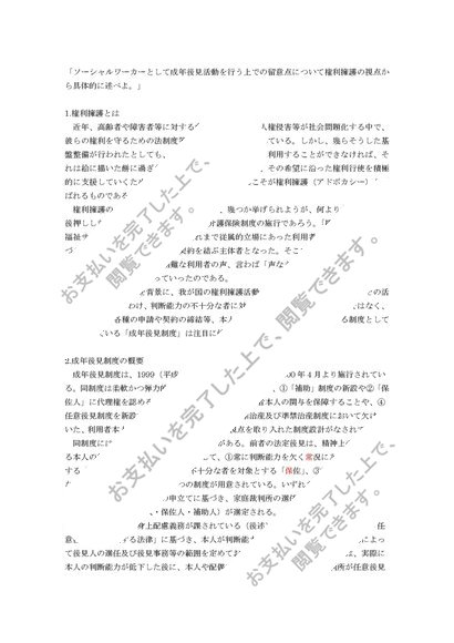 【権利擁護と成年後見 A】ソーシャルワーカーとして成年後見活動を行う上での留意点について権利擁護の視点から具体的に述べよ