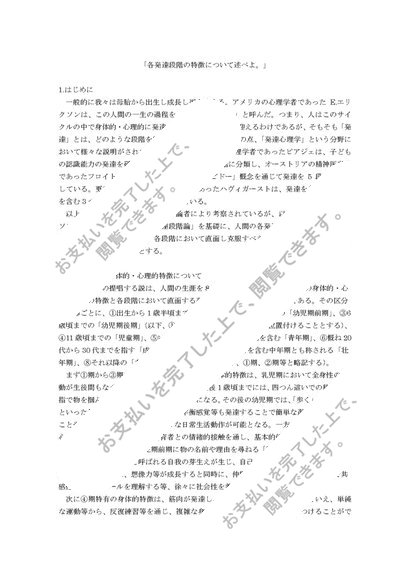 【心理学概論 B+評価】各発達段階の特徴について述べよ