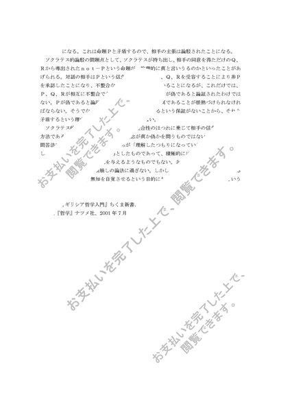 哲学 ソクラテス的論駁と呼ばれる論法を実例とともに説明し、その上でその問題点を述べなさい。