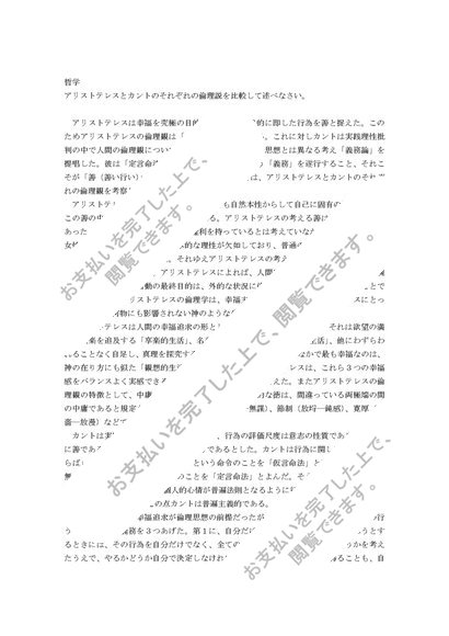 哲学 アリストテレスとカントの各々の倫理説を比較して述べなさい。