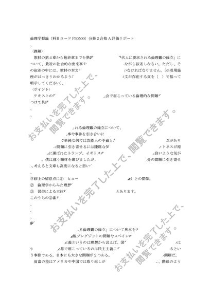 日大通信倫理学概論分冊2 合格リポート平成29・30年度課題A評価レポート書き方ポイント付き
