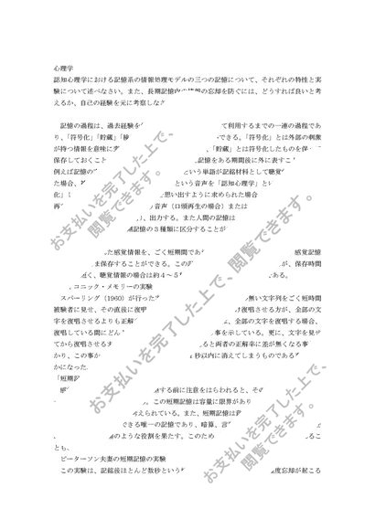 心理学 記憶系の情報処理モデル(感覚記憶、短期記憶、長期記憶)