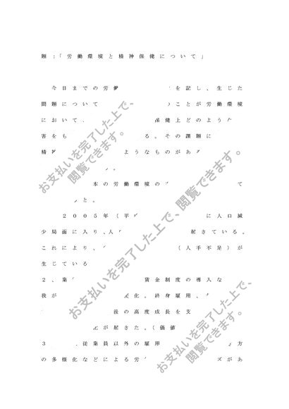 【レポート】勤労者の労働環境における精神保健について述べよ