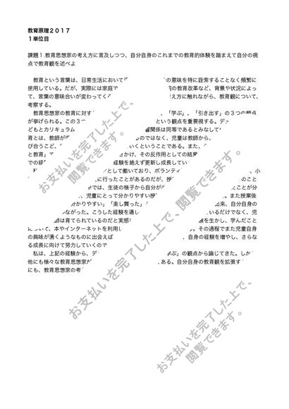 明星大学 教職入門・教育原理 セット 1・2単位 合格レポート(2017)