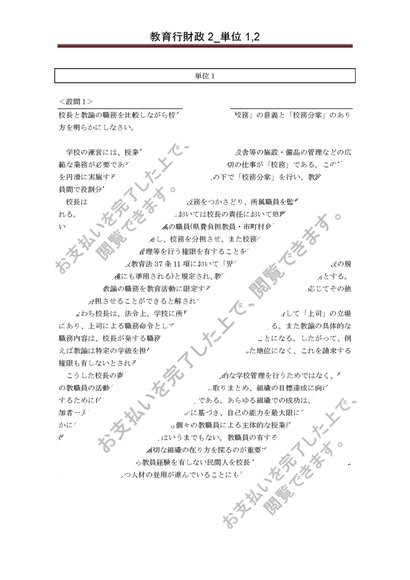 【明星大学】教育行財政2_合格レポート単位1 ,2
