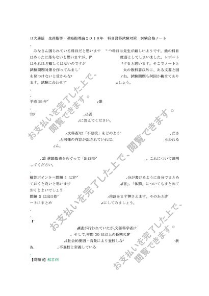 日大通信 生徒指導・進路指導論 2018年科目習得試験対策試験合格ノート