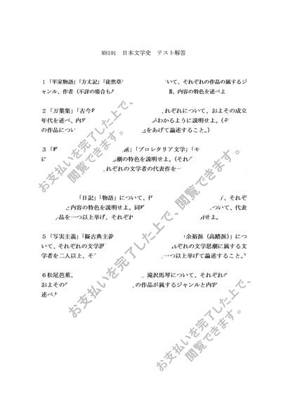 M8101 日本文学史 最終科目試験 設題6問 解答 H30年対応