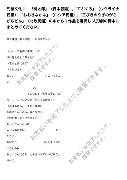 児童文化Ⅰ 「桃太郎」(日本昔話),「てぶくろ」(ウクライナ民話),「おおきなかぶ」(ロシア民話),「三びきのやぎのがら