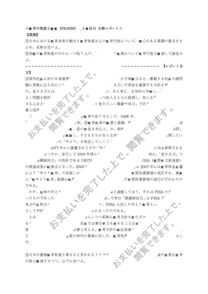 【明星通信】 教育の制度と経営(PA1030) _ 1単位目+2単位目セット 合格レポート