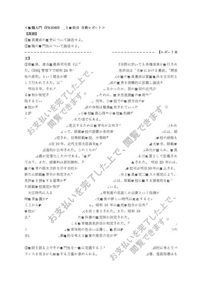 【明星通信】 教職入門(PA1040) _ 1単位目 合格レポート