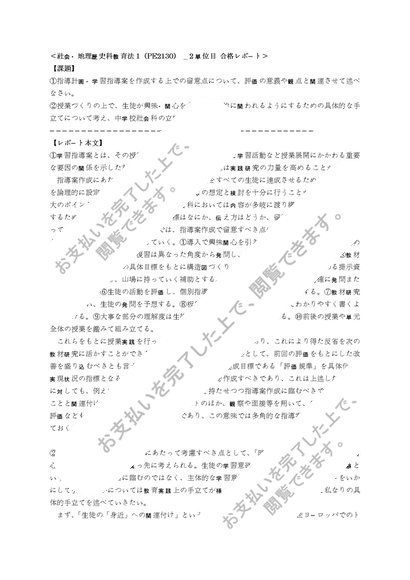 【明星通信】 社会・地理歴史科教育法1(PE2130) _ 2単位目 合格レポート