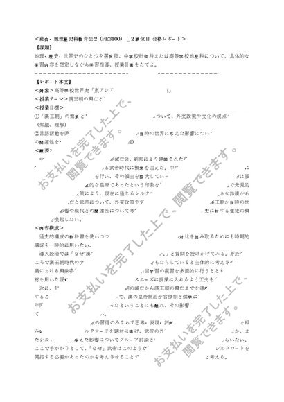 【明星通信】 社会・地理歴史科教育法2(PE3100) _ 2単位目 合格レポート
