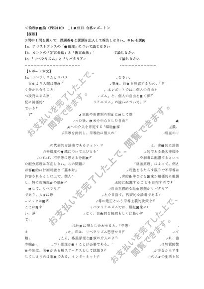 【明星通信】 倫理学概論(PE2110) _ 1単位目 合格レポート