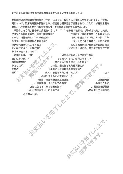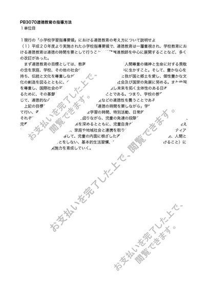 明星大学 道徳教育の指導法(小学校) 1・2単位 合格レポート(2017)