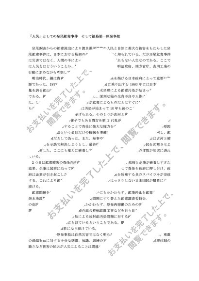 「人災」としての足尾鉱毒事件 そして福島第一原発事故