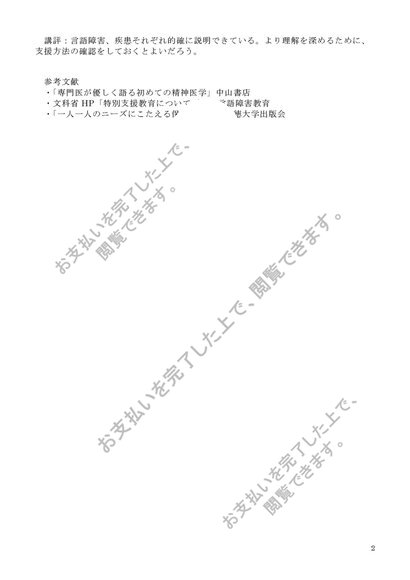 聖徳:障害児心理学 課題2「情緒障害・言語障害から選び特徴、支援方法を述べよ:言語障害」
