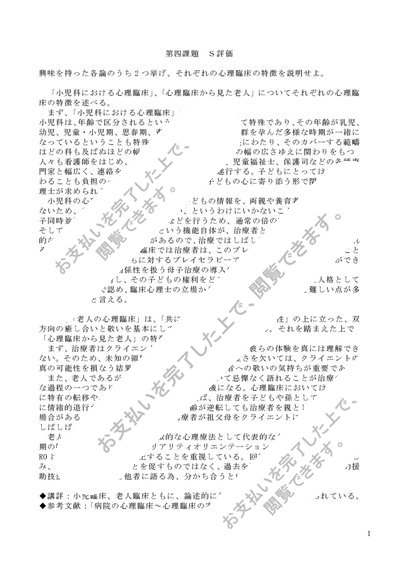 聖徳:病院臨床心理学課題4「興味を持った各論の特徴を呼べよ。小児臨床、老人臨床の特徴」