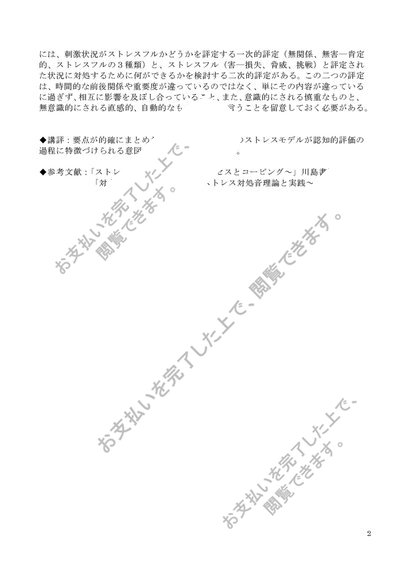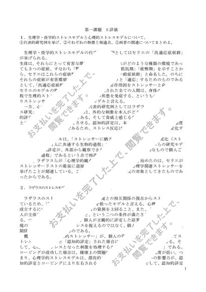 聖徳:ストレス心理学 課題①「生理学・疫学的ストレスモデルと心理的ストレスモデルについてまとめよ」