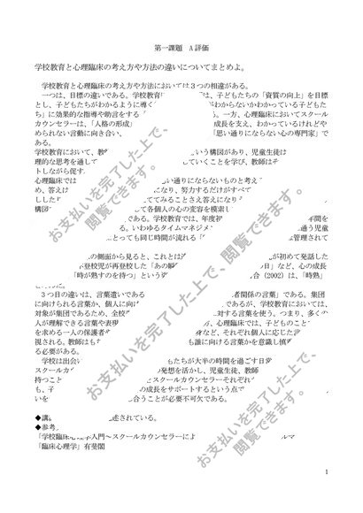 聖徳:学校臨床心理学 課題1「学校教育と心理臨床の考え方や方法の違い」