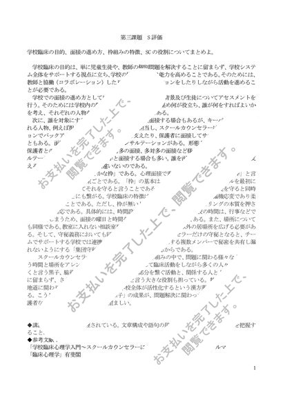 聖徳:学校臨床心理学課題3「学校臨床の目的、面接の進め方、枠組みの特徴、スクールカウンセラーの役割」