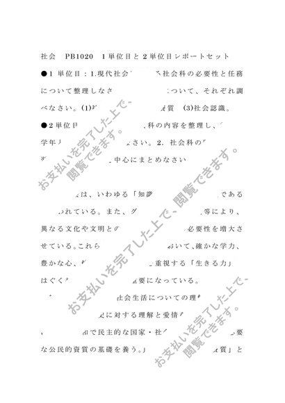 社会 PB1020 1単位目と2単位目レポートセット 合格済
