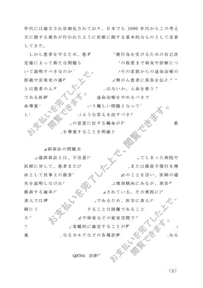 【Q0704】法律学概論第2投題【A判定】