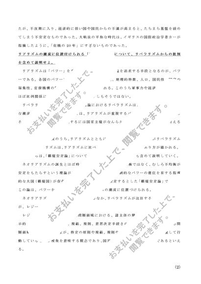 佛教大学 国際政治学 科目最終試験対策(6題) 2018