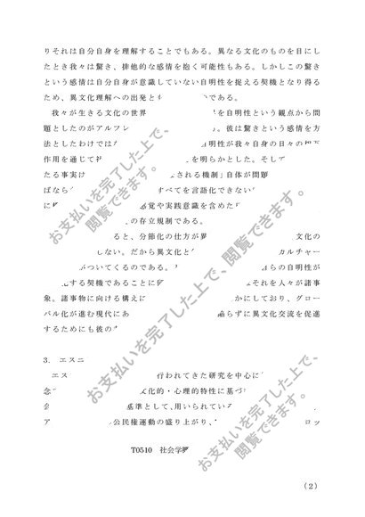 社会学概論【T0510】第2投題【2018年度B判定】