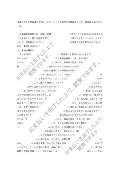 評価A 保育内容(表現)「表現を育てる保育者の役割について、子どもの表現との関連において、具体例を挙げて述べよ。」