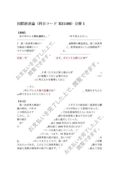 平成29~30年、日大通信、国際経済論(科目コード R31100)分冊1、オールA評価、合格レポート