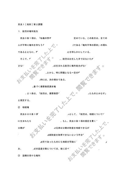 中央大学法学部通信教育課程 2018年 民法1 [総則] 第2課題 A評価