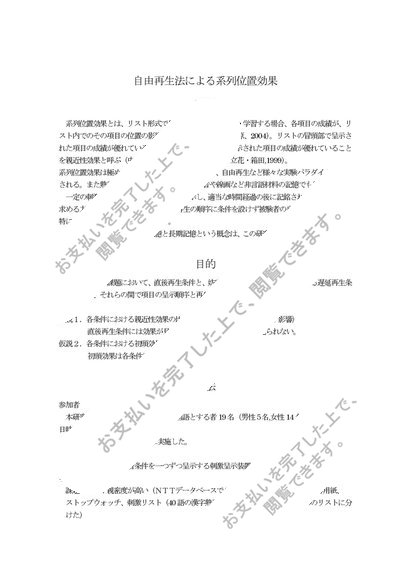 実験 自由再生法による系列位置効果