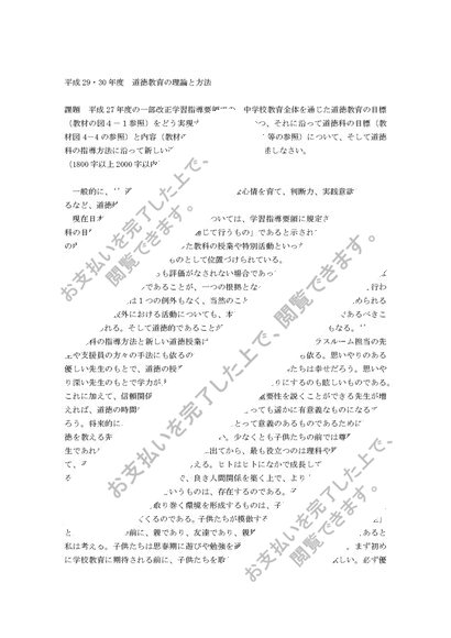 平成29.30年度 道徳教育の理論と方法 合格レポート